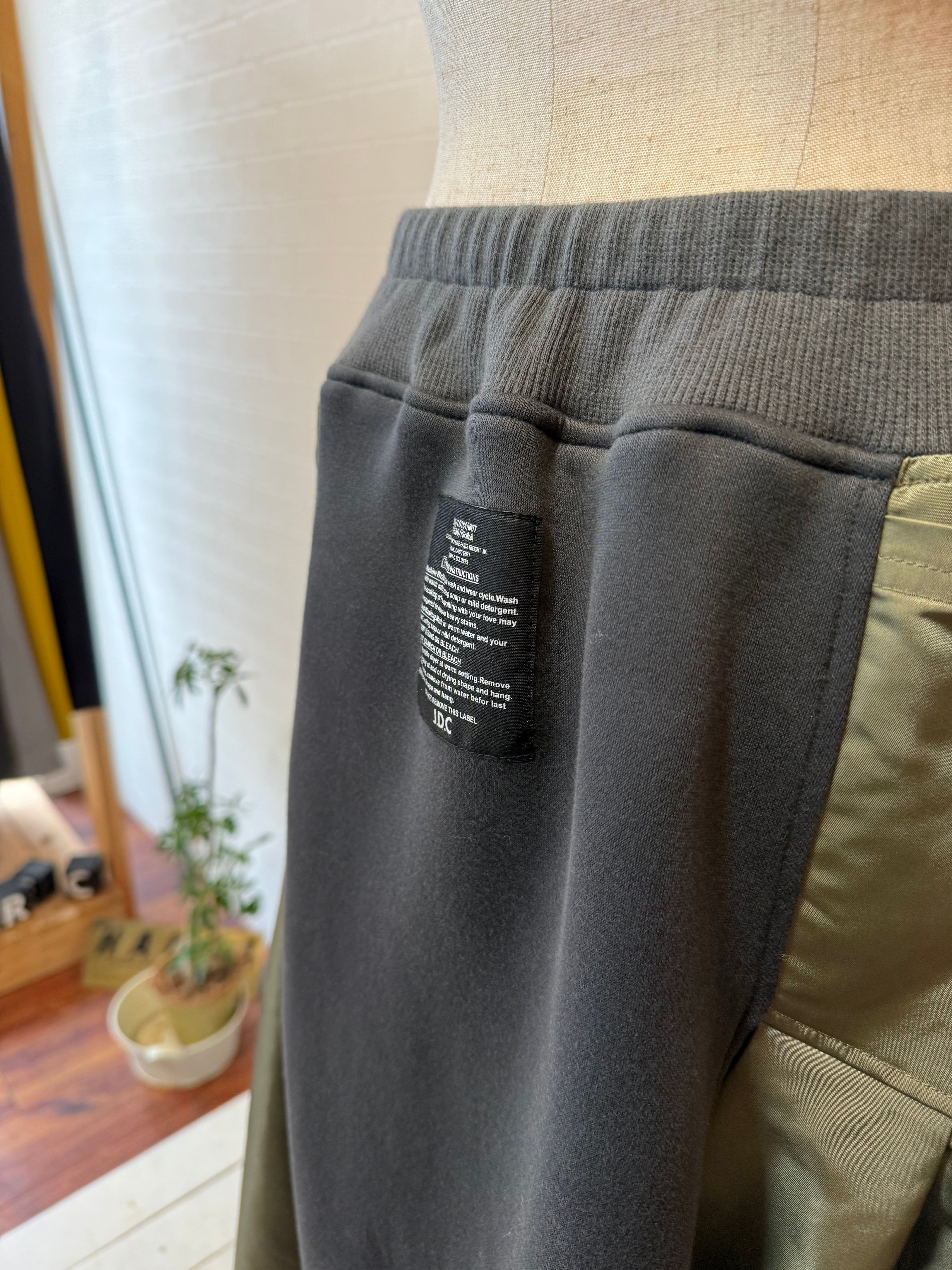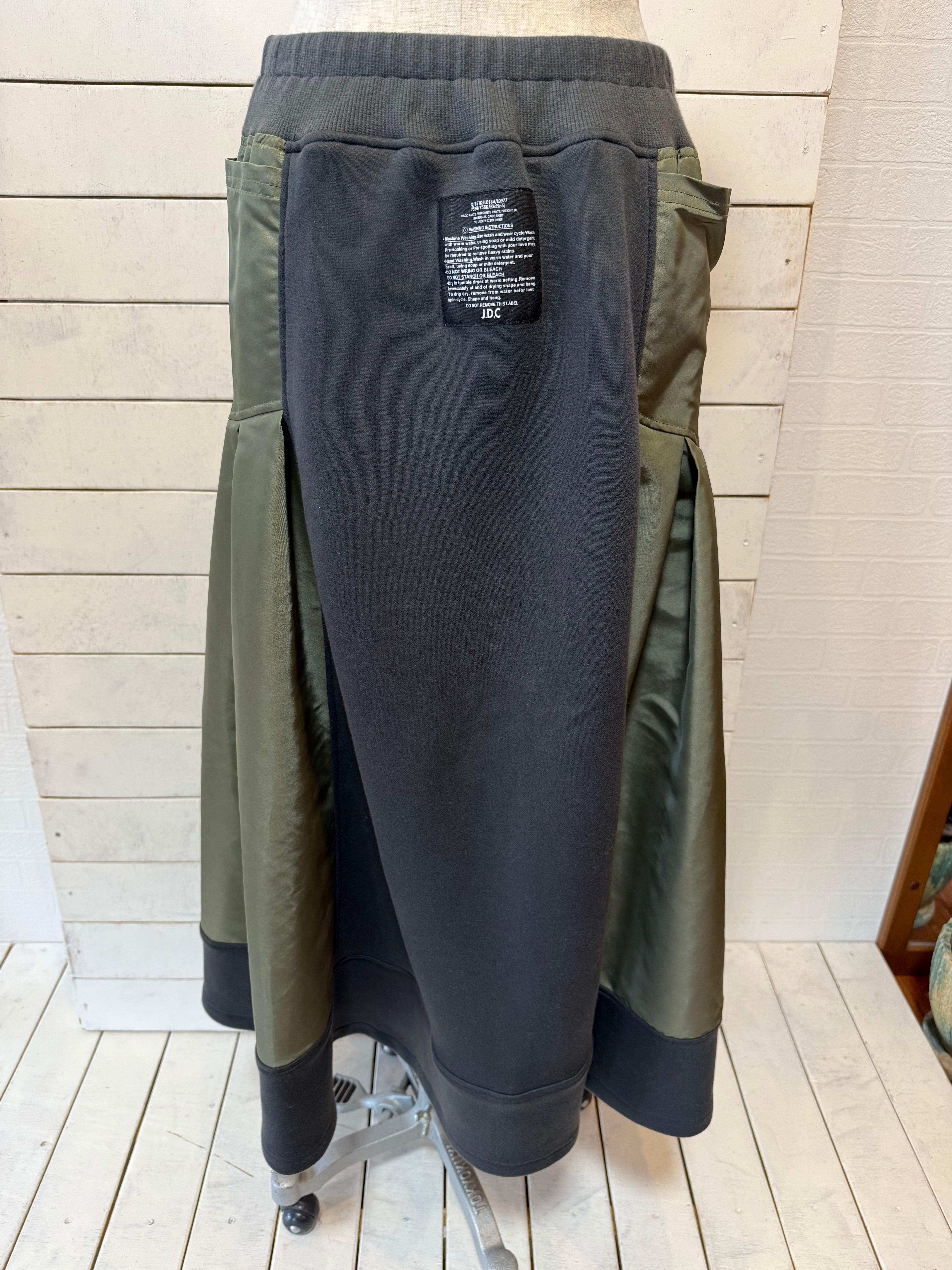 キレイめの表面感とハリコシのあるハイゲージプレシャスダンボールニットを使用したMA-1ナイロンで切り替えたボリュームあるフレアスカート