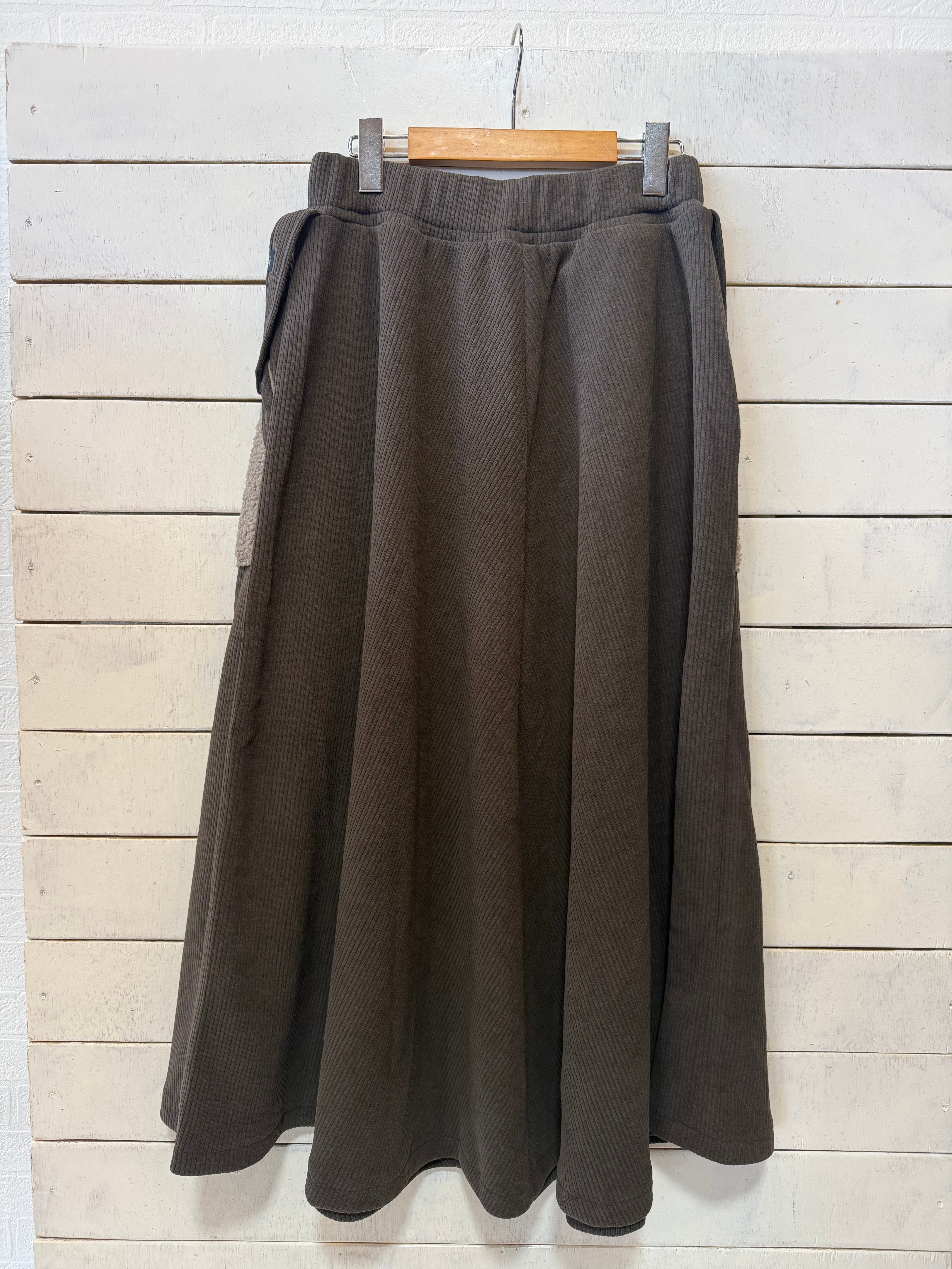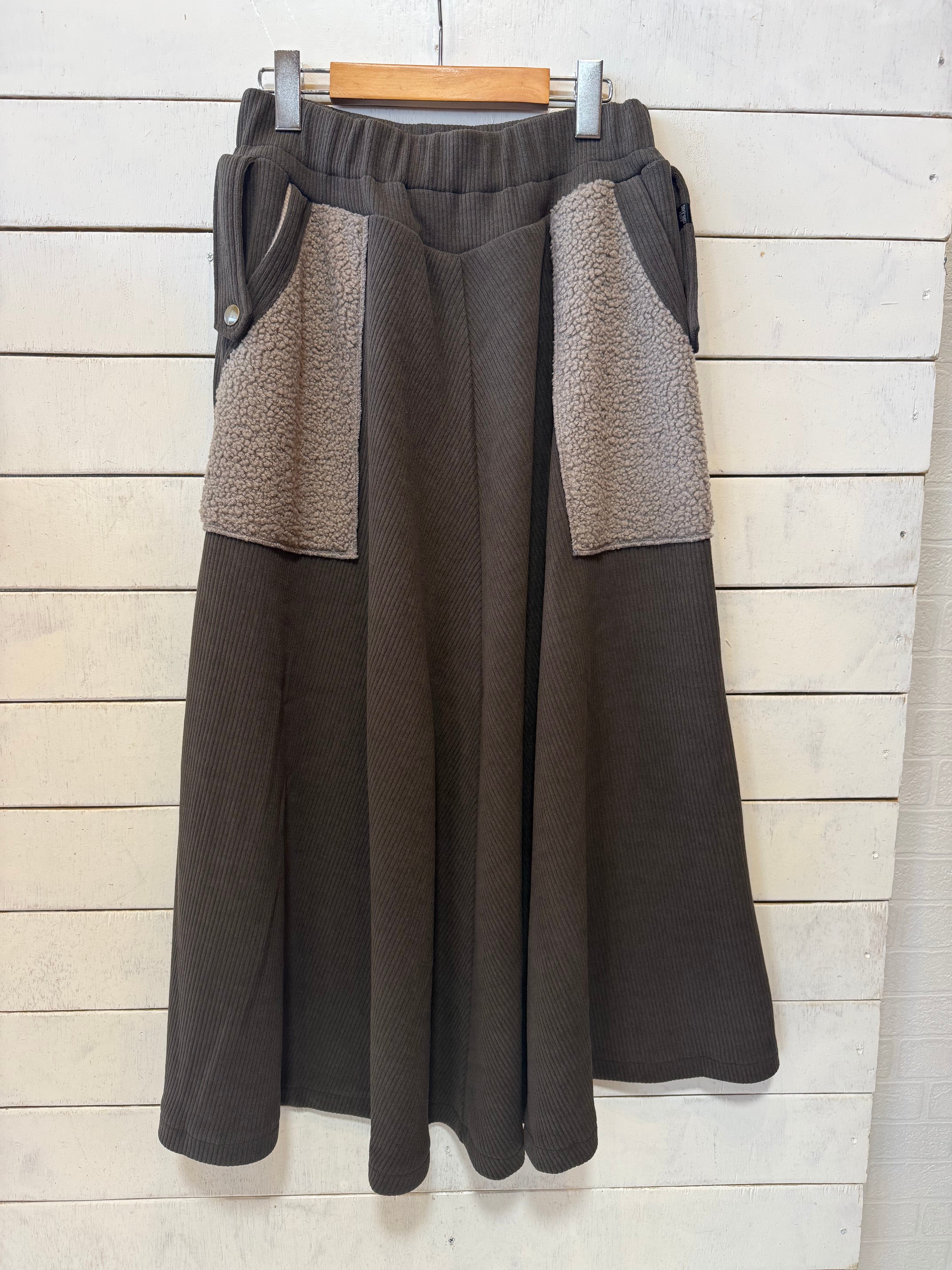 ポケットにパイル織りを使用しカジュアル感を出し程よいボリュームがニットなどとのバランスをとってくれる冬のあったかスカート