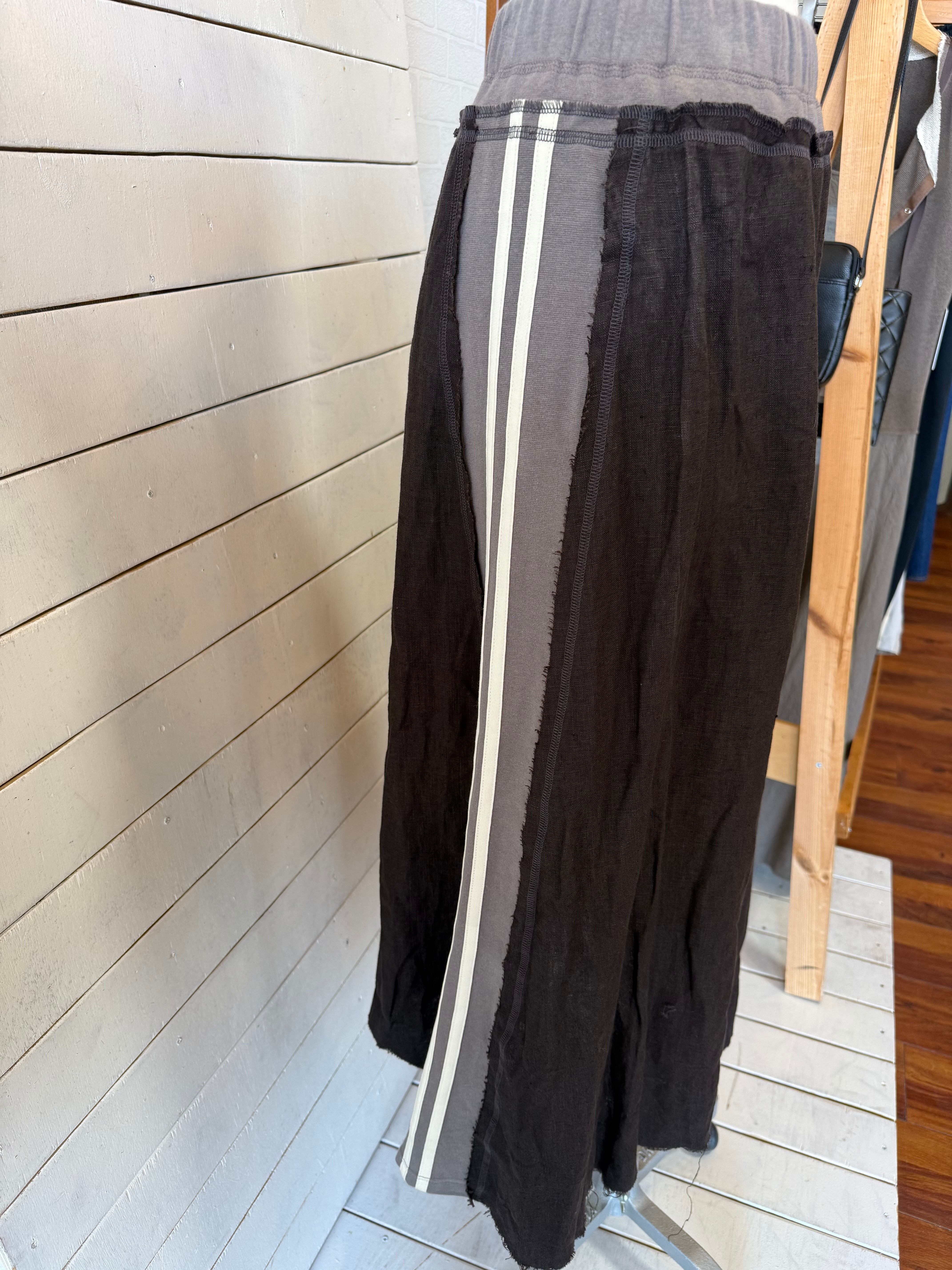 フレンチリネンスカートをラップ風にアレンジし片サイドにニットテープでアシンメトリーなスポーツテイスト溢れるカーゴスカート
