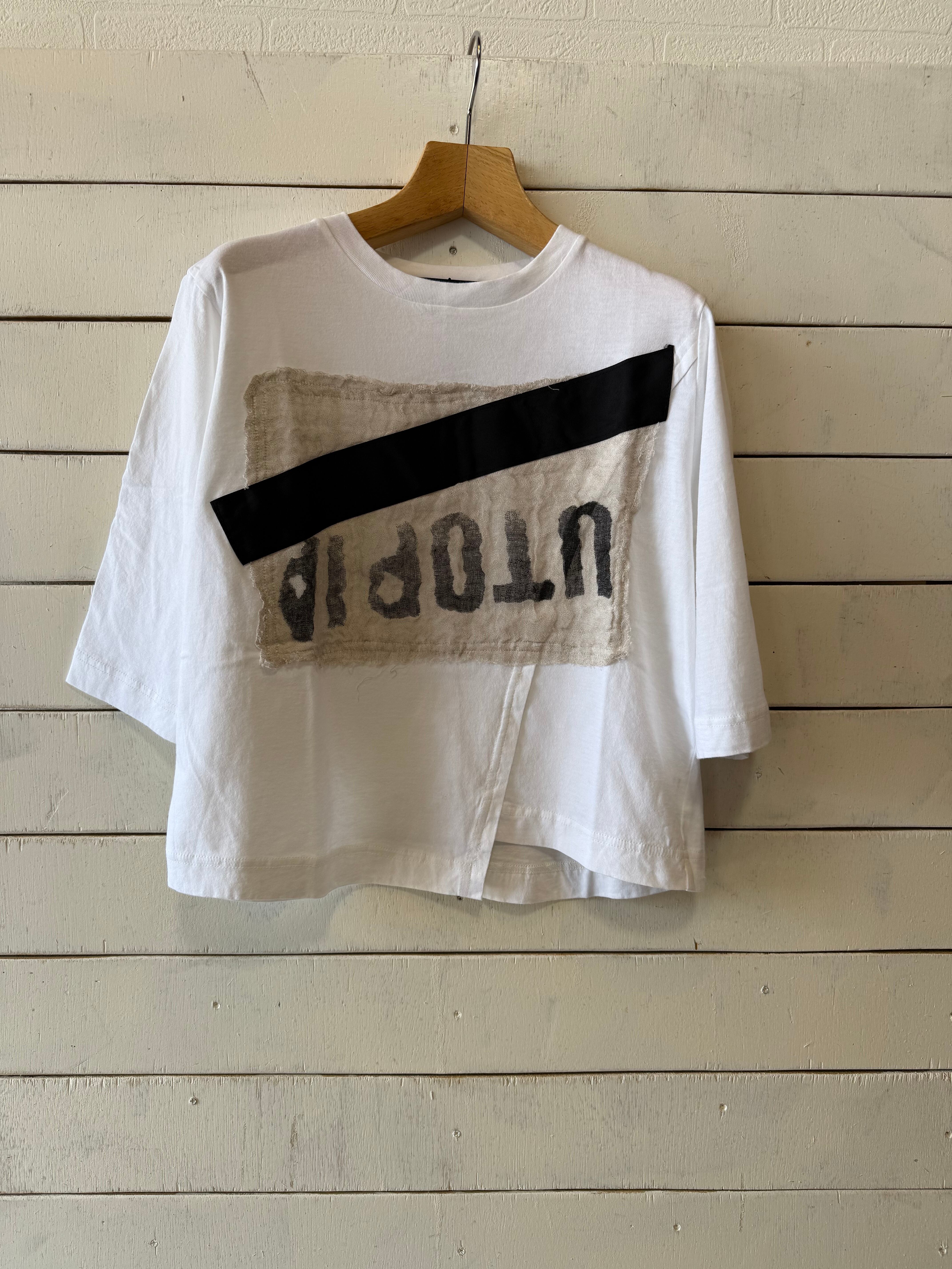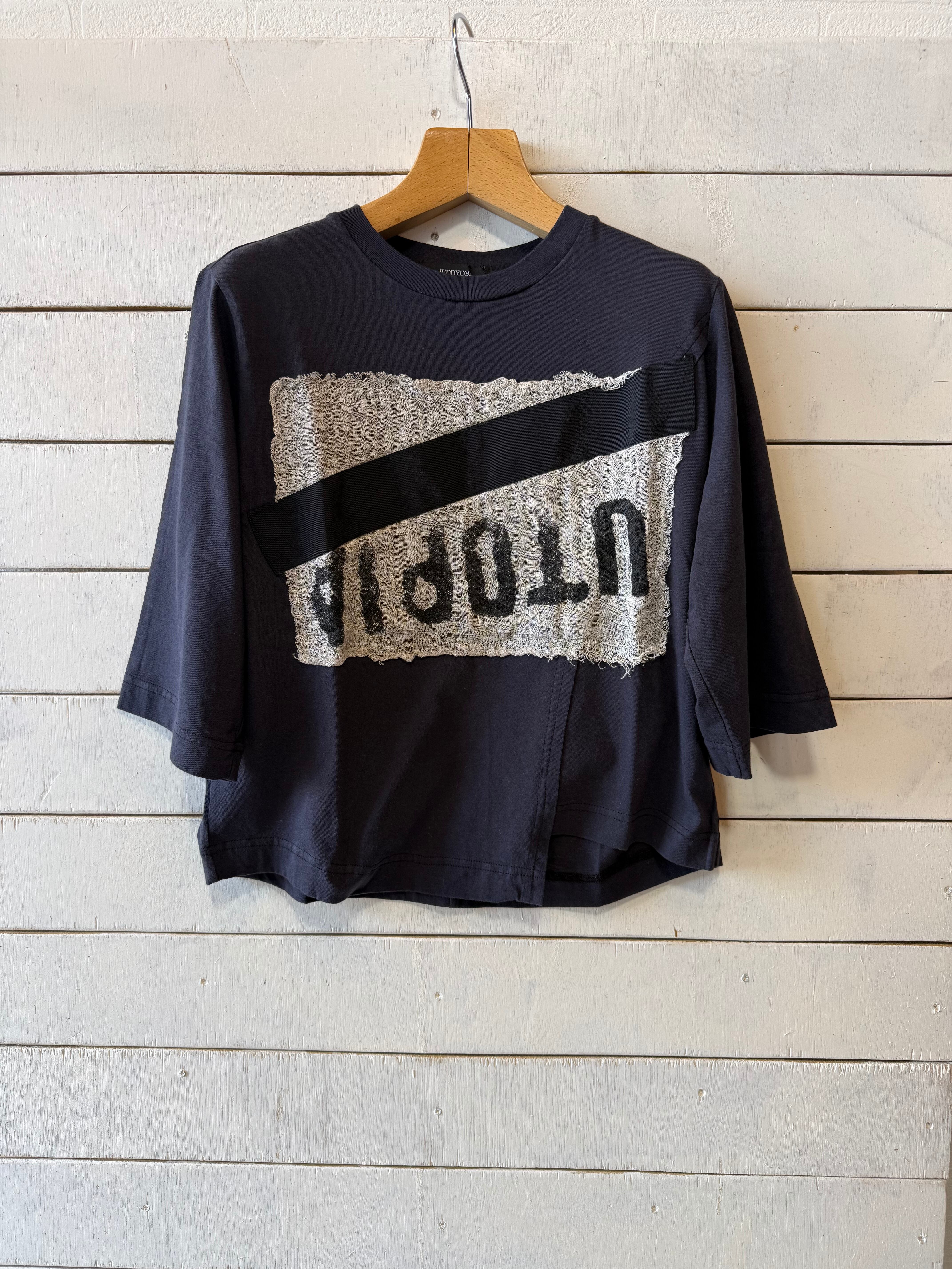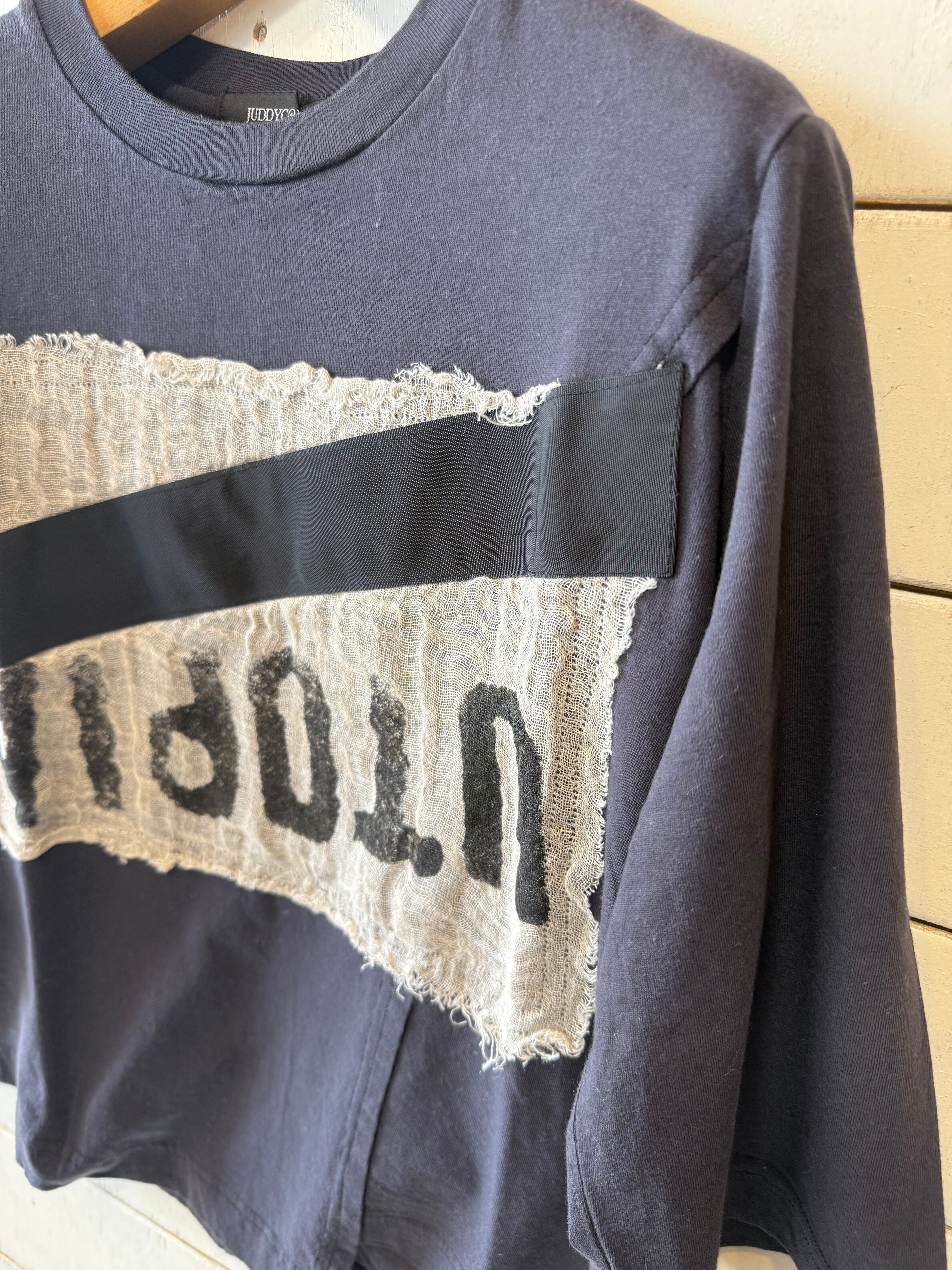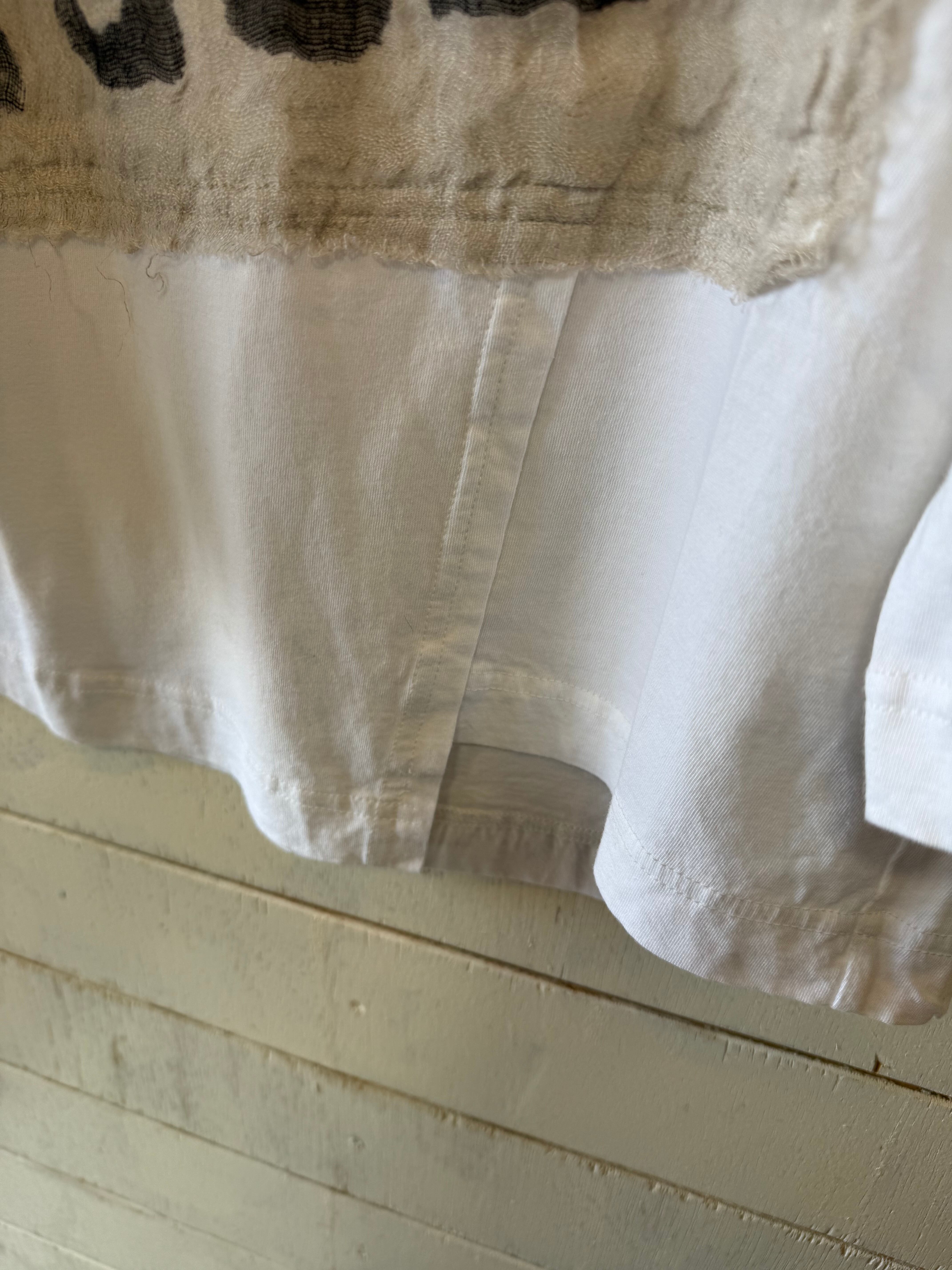 胸のパッチワークはざっくりと甘く織ったリネン100%